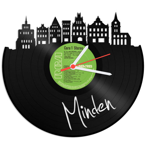 Wanduhr aus Vinyl Skyline mit Deiner Stadt