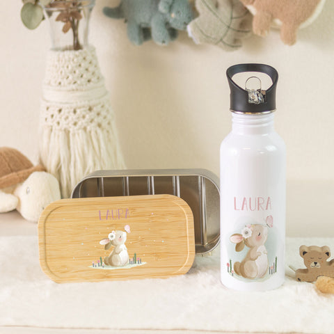 Bedruckte Brotdose & Trinkflasche im Set - Hase