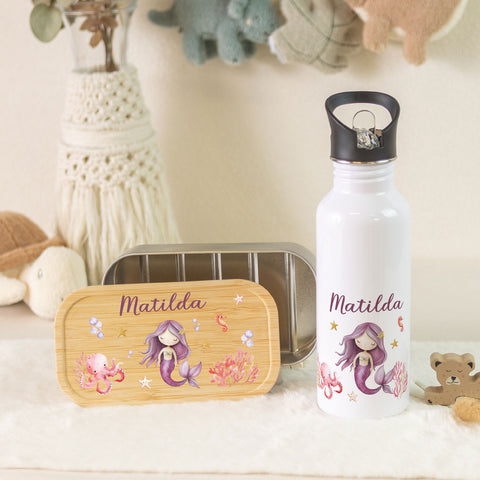 Bedruckte Brotdose & Trinkflasche im Set - Meerjungfrau