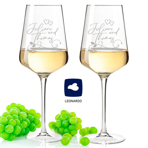 Leonardo Puccini Weißweingläser im Simple Love Design mit Namen & Datum im Set