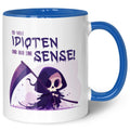 Bedruckte Tasse mit Spruch in lila - So viele Idioten und nur eine Sense