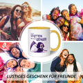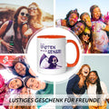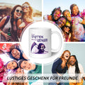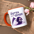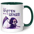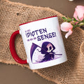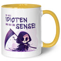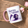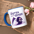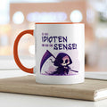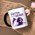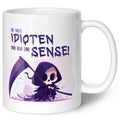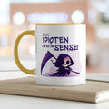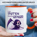 Eigenschaften Bedruckte Tasse mit Spruch in lila - So viele Idioten und nur eine Sense