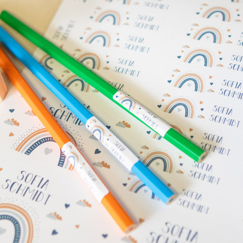 - Schuletiketten mit Namen: Ob Bücher, Hefte oder Stifte – mit den personalisierbaren Schulaufklebern im Color Splash Design ist alles klar beschriftet.