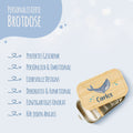 Große Dose: (L) 19.5 x (B) 12 x (H) 6 cm Volumen: 1100 ml Gewicht: ca. 290 Gramm