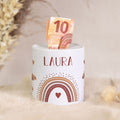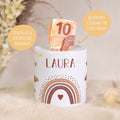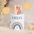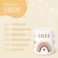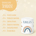 Eigenschaften Bedruckte Spardose für Kinder - im Regenbogen Design - mit Namen personalisiert
