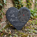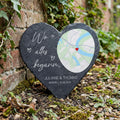 Dieses bedruckte Schieferherz hält eure Liebe und einen besonderen gemeinsamen Ort auf stilvolle Weise fest. In Herzform gestaltet und individuell personalisiert, bietet es Platz für einen Kartenabschnitt, Namen und einen persönlichen Wunschtext.