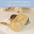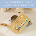 - Robuste Weißblech-Schale, nachhaltiger Bambusholz-Deckel