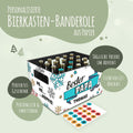 Sie erhalten eine personalisierte Bierkastenbanderole inklusive Klebestreifen mit 24 passend gestalteten Deckelaufklebern.