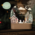 Kinder LED Nachtlicht mit Sockel aus Holz - "Winterhütte"
