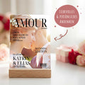 Dieser personalisierte Aufsteller setzt euren gemeinsamen Moment im Design eines modernen Magazin-Covers stilvoll in Szene. Das Motiv lässt sich mit Namen, Datum und Elementen wie einem Editionstitel individuell nach euren Vorstellungen gestalten und wird so zu einem dekorativen und persönlichen Highlight.