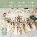Bei den Produktbildern handelt es sich um Anwendungsbeispiele. Der Kalender wird standardmäßig als Holzplatte mit personalisiertem Druck und Bohrungen geliefert und bietet die ideale Grundlage zum kreativen Basteln. Ergänzend sind passende Holzplättchen mit den Zahlen 1–24 sowie farbige Baumwollbeutel erhältlich.