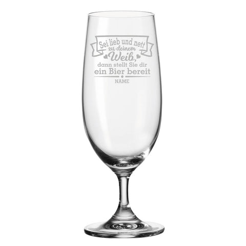 Leonardo Bierglas mit Gravur "Sei lieb und nett zu deinem Weib" mit Namen