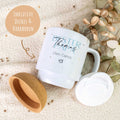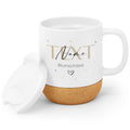 Bedruckte Tasse mit Korksockel & Deckel - Wunschtext V2