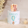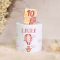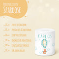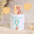 Eigenschaften Bedruckte Spardose für Kinder - im Ballon Fuchs Design - mit Namen personalisiert
