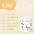 Eigenschaften Bedruckte Spardose für Kinder - im Cowboy Design