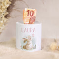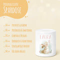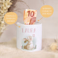Eigenschaften Bedruckte Spardose für Kinder - im Hasen Design - mit Namen personalisiert