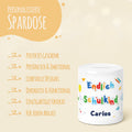Eigenschaften Bedruckte Spardose für Kinder - im Endlich Schulkind Design
