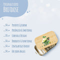 Große Dose: (L) 19.5 x (B) 12 x (H) 6 cm Volumen: 1100 ml Gewicht: ca. 290 Gramm
