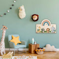 Diese Garderobenleiste vereint Funktionalität und Stil auf charmante Weise. Mit robusten Kleiderhaken bietet sie nicht nur Platz für Jacken, Rucksäcke und Mützen, sondern dient auch als ansprechende Dekoration. Die liebevoll gestalteten Motive, von Regenbögen bis hin zu niedlichen Tieren, machen sie zum Blickfang im Raum und lassen sowohl Mädchen als auch Jungen strahlen.