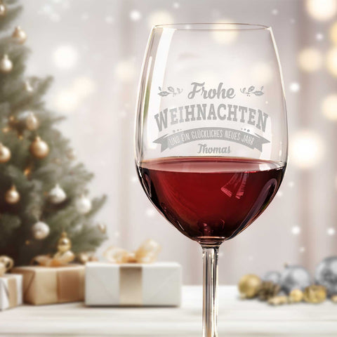 Leonardo Weinglas mit Gravur - "Frohe Weihnachten, Glückliches neues Jahr"