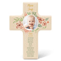 Personalisierbares Holzkreuz zur Taufe Konfirmation oder Kommunion - Mit eigenem Foto - Blumenkranz