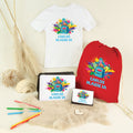 Ein praktisches und stylisches Set für den Schulstart – bestehend aus T-Shirt, Sportbeutel, Federmappe und Geldbörse. Alle Teile sind auf Alltagstauglichkeit, Qualität und kindgerechtes Design abgestimmt.
